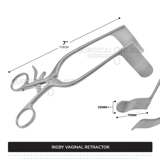 Rigby Vaginal Retractor 7" (17.8 cm) Long, 7/9" (2 cm) x 2 3/4" (7cm) Blades With Grip Lock Handle