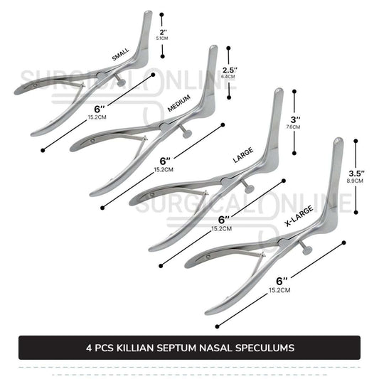4 Pcs Killian Nasal Speculum Set Small, Medium, Large, & X-Large Rhinology