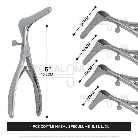 4 Pcs Cottle Nasal Speculum Set With Set Screw Small, Medium, Large, & X-Large Blades