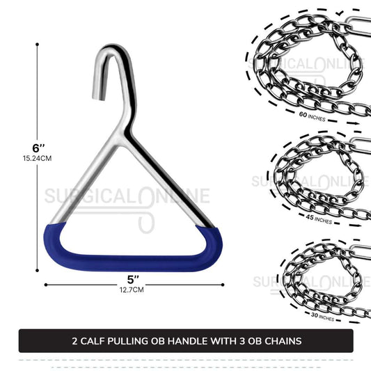 5 Pcs Cattle Birth Delivery Set, 3 Calf Pulling OB Chains 30", 45", 60" and 2 Handles Surgical Veterinary Instruments