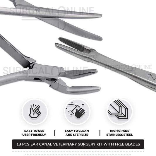 13 Pcs Animal Ear Surgery Kit Stainless Steel Veterinary Instruments Set with ???? Surgical Scalpel Blades