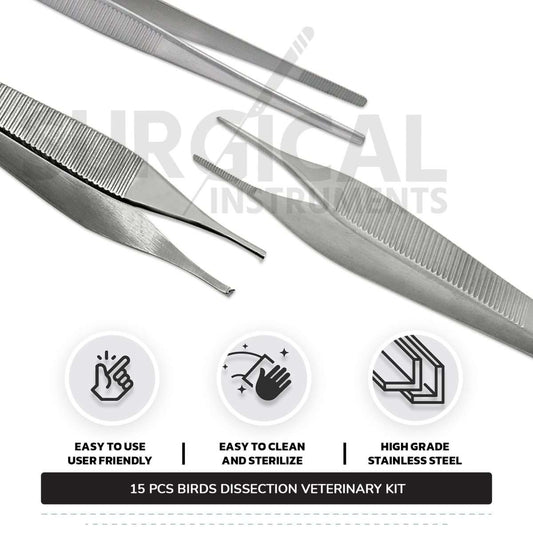 15 Pcs Birds Dissection Kit Stainless Steel Surgical Veterinary Instruments Set with FREE Carrying Case