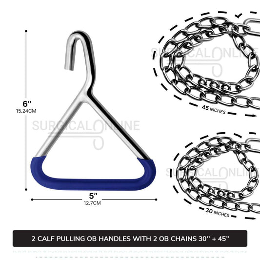 2 Ob Chains 30" & 45" With 2 Ob Handles Calf Pulling Cattle Birth Delivery Set Surgical Veterinary Instruments