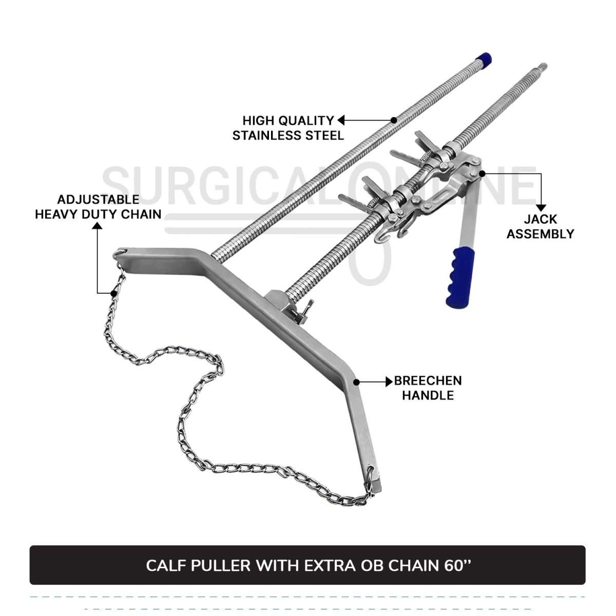 Our Calf Pullers are available in multiple working sizes like 65" & 67". Contact us if you are not finding the desired veterinary speculum. We also have other instruments like Calf Pullers, Horse mouth Gags, Emasculators, OB chains, Veterinary Stomach Pump, Polansky, & ETC.