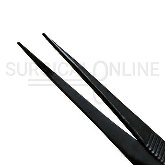 Splinter Forceps Black 4.50" Fine Point Serrated Tips