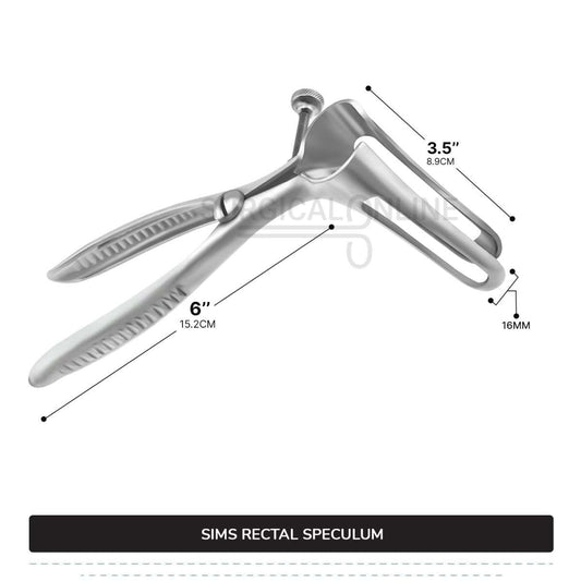 Sims Rectal Speculum, 6" (15.2 cm) Long, With Set Screw, Fenestrated Blades, 3 1/2" (8.9 cm) Long, 5/8" (1.6 cm) Wide