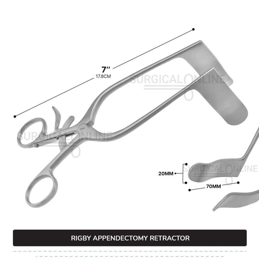 Rigby Appendectomy Retractor 7" (17.8 cm) Long, 7/9" (2 cm) x 2 3/4" (7cm) Blades With Grip Lock Handle