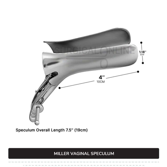 Miller Vaginal Speculum 4" (10 cm) X 1 1/5" (3 cm) Blades, 3.5" (8.9 cm) Handle With Two Adjustable Set Screws