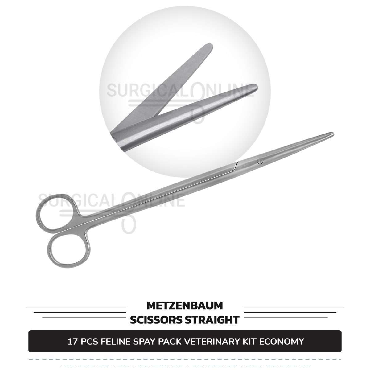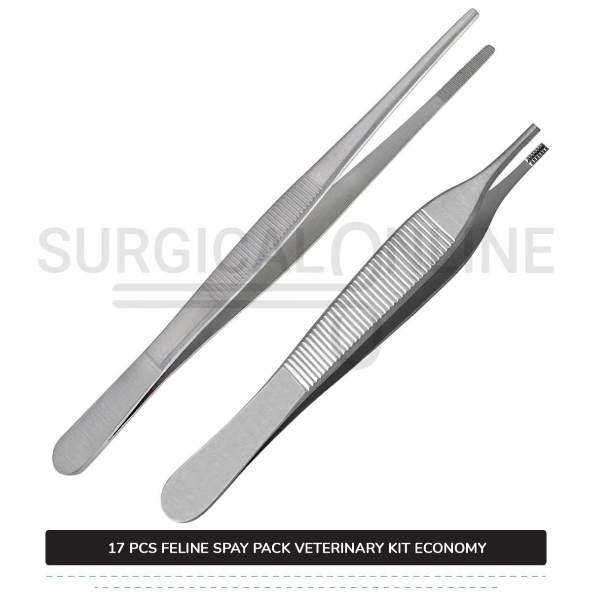 A veterinary 17-Pcs Feline Spay Kit comprises instruments and supplies tailored for performing spaying or neutering procedures on cats. Veterinarians use this pack to spay female cats, neuter male cats, control populations, confer health benefits, modify behavior, and promote responsible pet ownership. Veterinarians perform spaying on female cats by removing the ovaries and uterus, while neutering male cats involves the removal of the testicles, both contributing to population control and overall pet health.