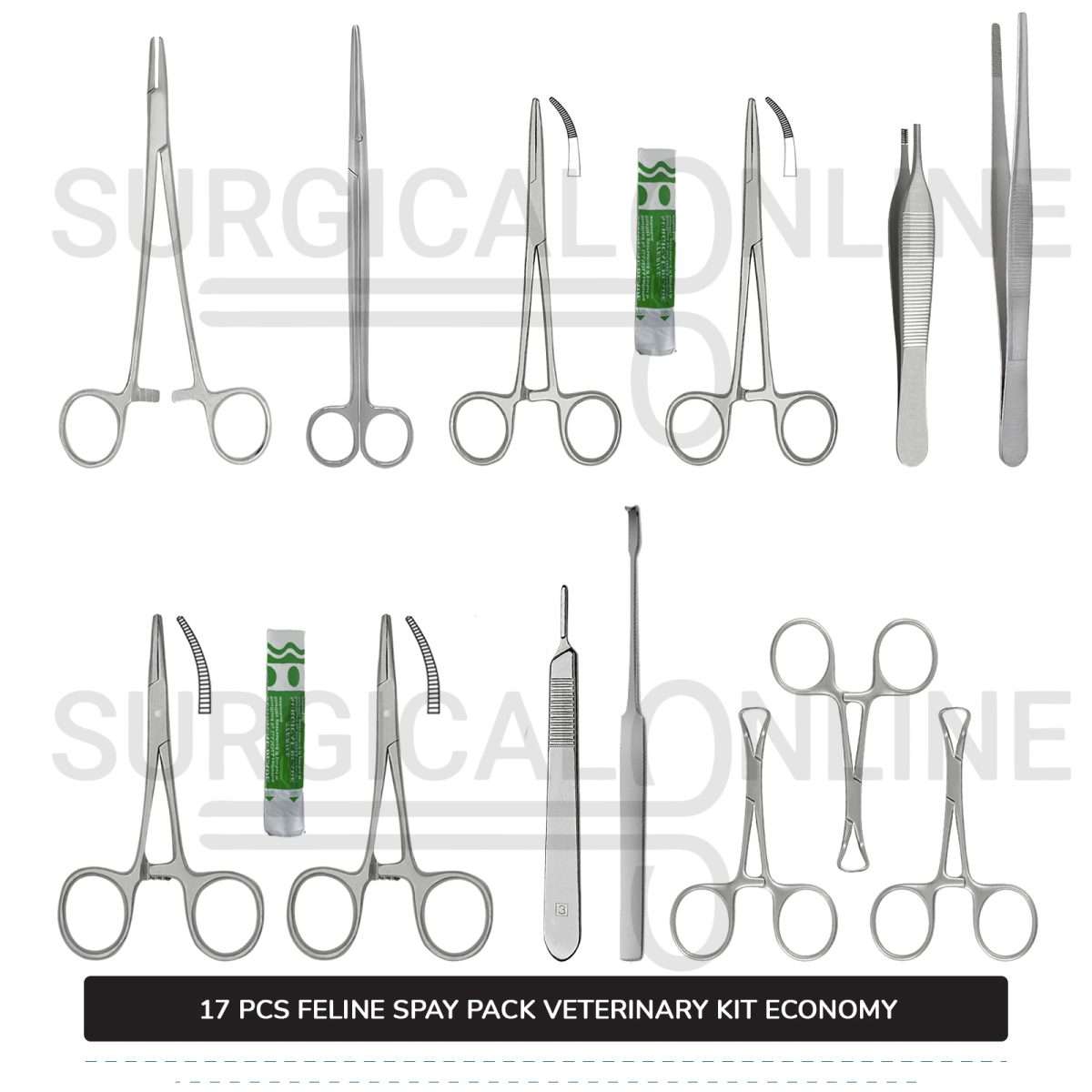 17-Pcs Feline Spay Kit is our best quality instrument Kit. Contact us if you are not finding the desired Veterinary Kit. We also have other instruments like a Dissection Kit, Feline Spay Kit, Large Animal Deep Surgery Set, Pets First Aid Instruments Kit, ETC.