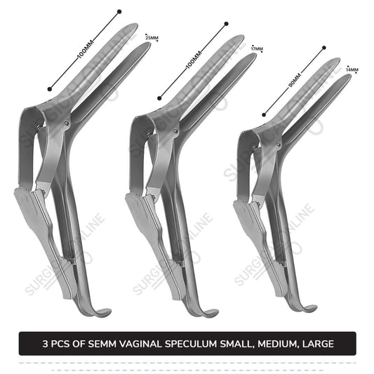 3 Pcs Semm Vaginal Speculum Set, Small, Medium, & Large Self-Retaining OB/GYN Instruments