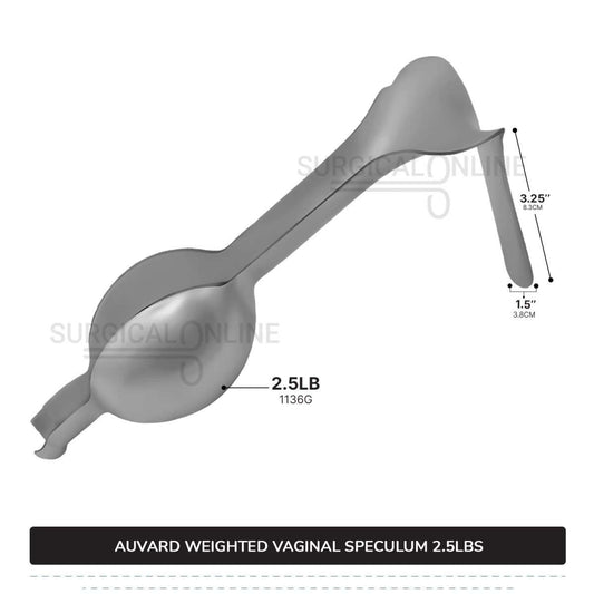 Auvard Weighted Speculum 2.50Lbs (1136 G), Straight Blade 1 1/2″ (3.8 cm) X 3 1/4″ (8.3 cm), Slightly Angled 75°