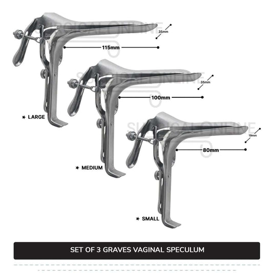 Set of 3 Pcs Grave Vaginal Speculum Small, Medium, & Large OB/Gyne Surgical