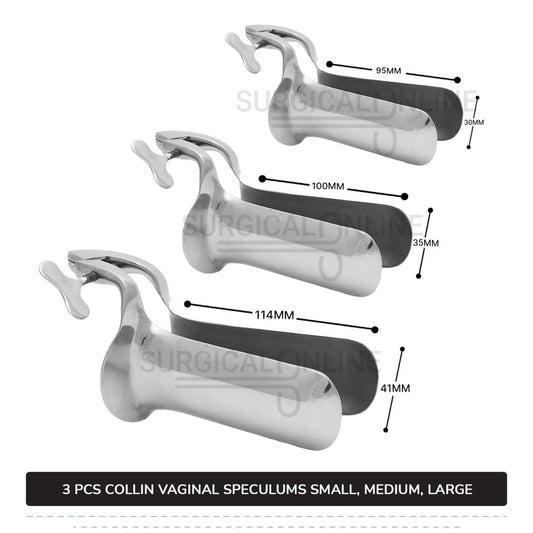 Set of 3 Pcs Collin Vaginal Speculum, Small, Medium, & Large OB/GYN