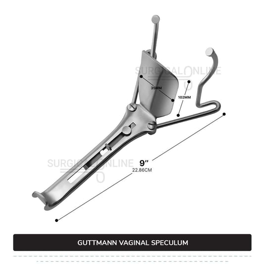Guttmann Vaginal Speculum 9" (22.9 cm) Long, 4" (10.2 cm) x 1 3/8" (3.5 cm) Solid Center Blade