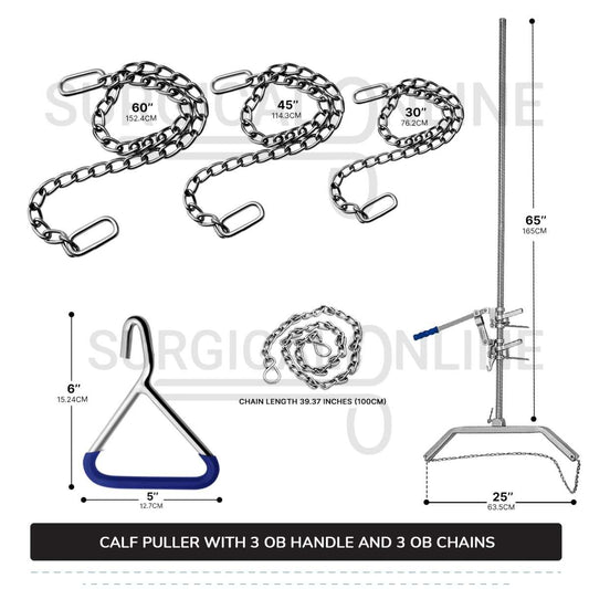 7 Pcs Calf Pulling Set, Ratchet Style Calf Puller with 3 OB Chains and 3 Handles Veterinary Instruments